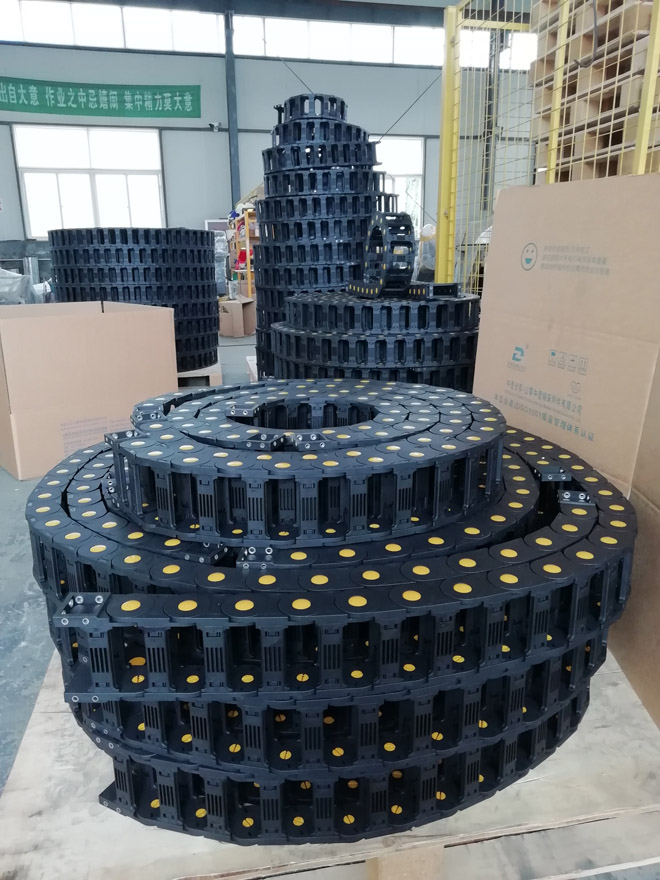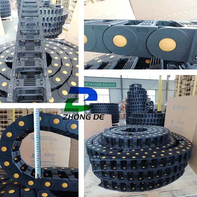 注:1、“/”表示暫無此類產品。 2、如果您要的規格不在此表內,中德公司也可按客戶要求設計生產各種規格拖鏈。 |